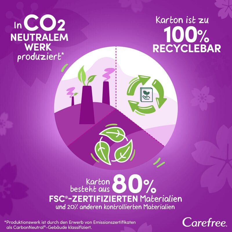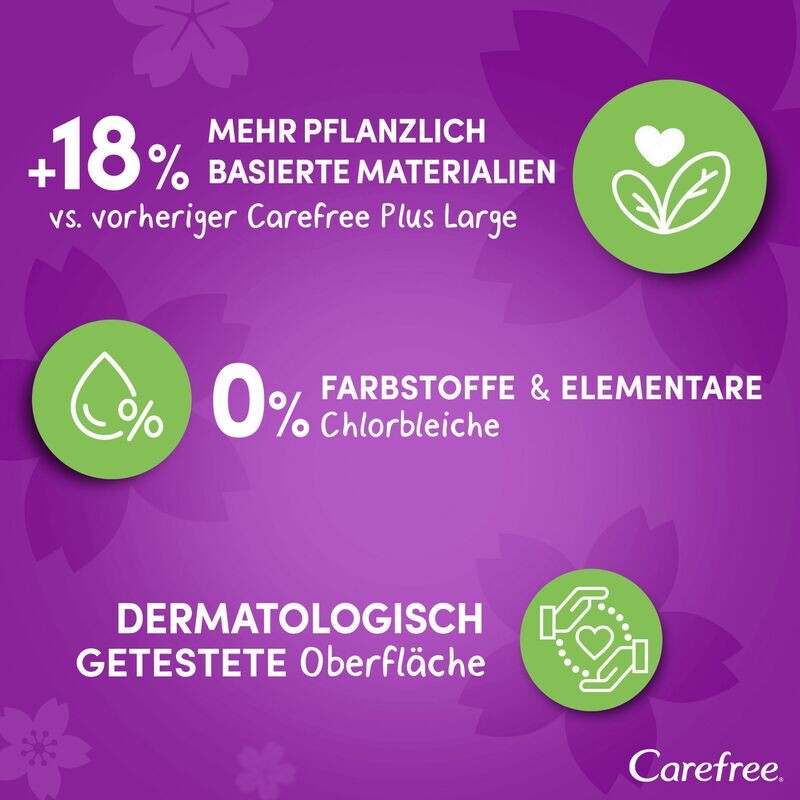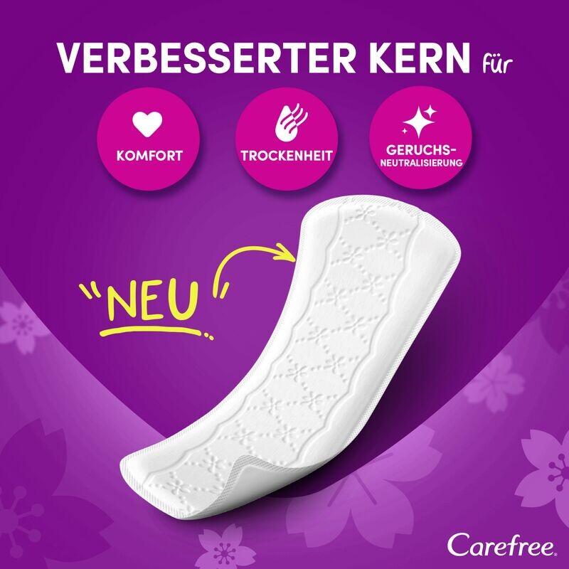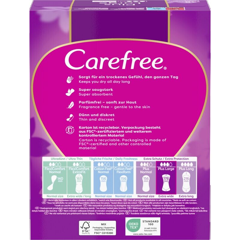 Новая сердцевина ежедневных прокладок и новый дизайн: шире и длиннее, чем прокладки Carefree Cotton Feel, для дополнительной защиты. Очень широкие и длинные ежедневные прокладки Carefree Plus Large с легким ароматом имеют супервпитывающую сердцевину, которая помогает мгновенно удерживать жидкость, даже запахи контролируются на срок до 12 часов. Поверхность Soft Touch обеспечивает особенно мягкий комфорт при ношении. Прокладки Carefree доступны в различных дизайнах: без отдушек или со свежим ароматом, длинные или короткие — среди прокладок Carefree каждый найдет что-то подходящее.