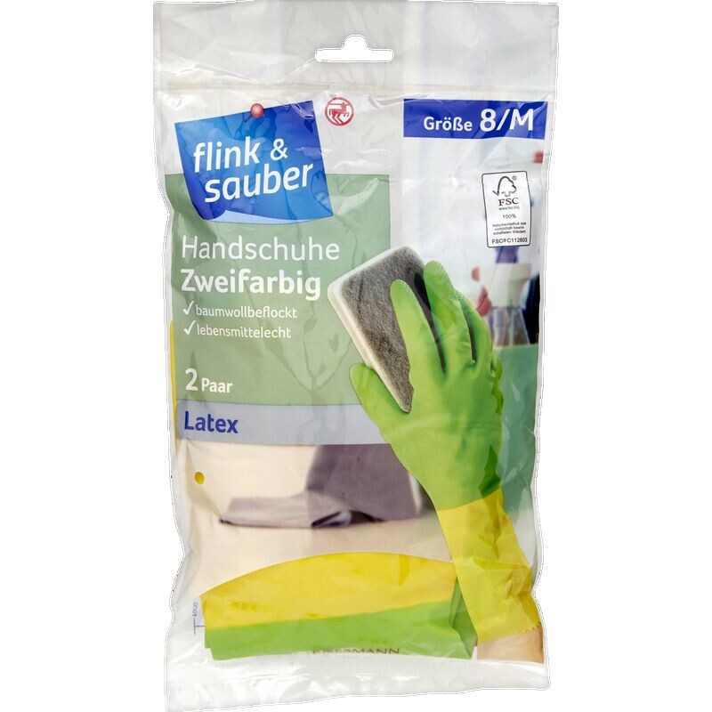 Двухцветные перчатки Quick & Clean изготовлены из натурального каучука и обеспечивают высокий уровень комфорта благодаря хлопковому ворсу на внутренней стороне. Их можно использовать универсально для всех видов уборки дома, а также для обработки пищевых продуктов.