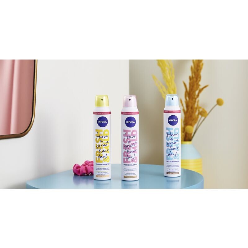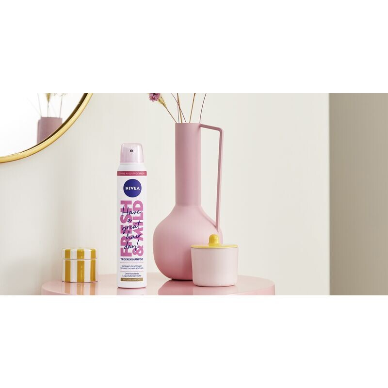 Для мгновенного ощущения свежести: сухой шампунь NIVEA Fresh & Mild Medium Hair Tones.
