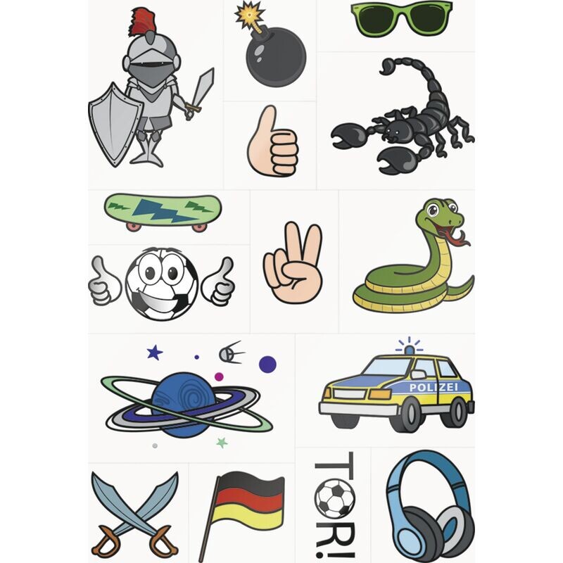 Дополнительно для детей: 30 мотивов татуировки предварительно перфорированы. Таким образом, нужный мотив можно легко выделить. Ножницы не нужны.