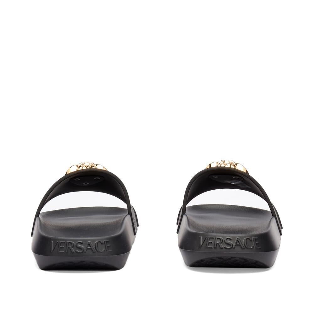 Бигги Смоллс оставил неизгладимый след в мире моды: его постоянно замечали, когда он представлял Versace в своих культовых очках, украшенных Медузой. Модный дом посвящает свою любимую эмблему Biggie легенде хип-хопа и обновляет ваши шлепанцы у бассейна. Они изготовлены в Италии из гладкой телячьей кожи с формованной стелькой, а голова Медузы затмевает собой золото, потому что что еще?