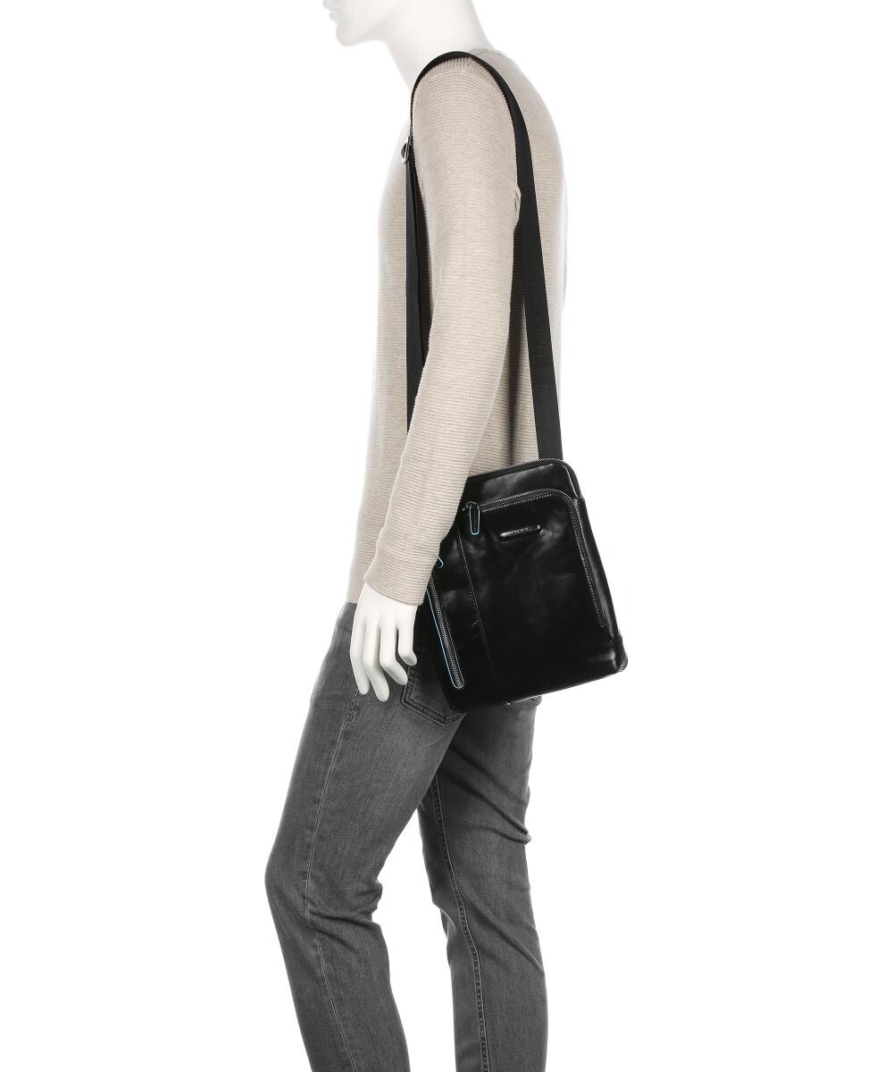 Синяя квадратная сумка через плечо из кожи Piquadro, черный