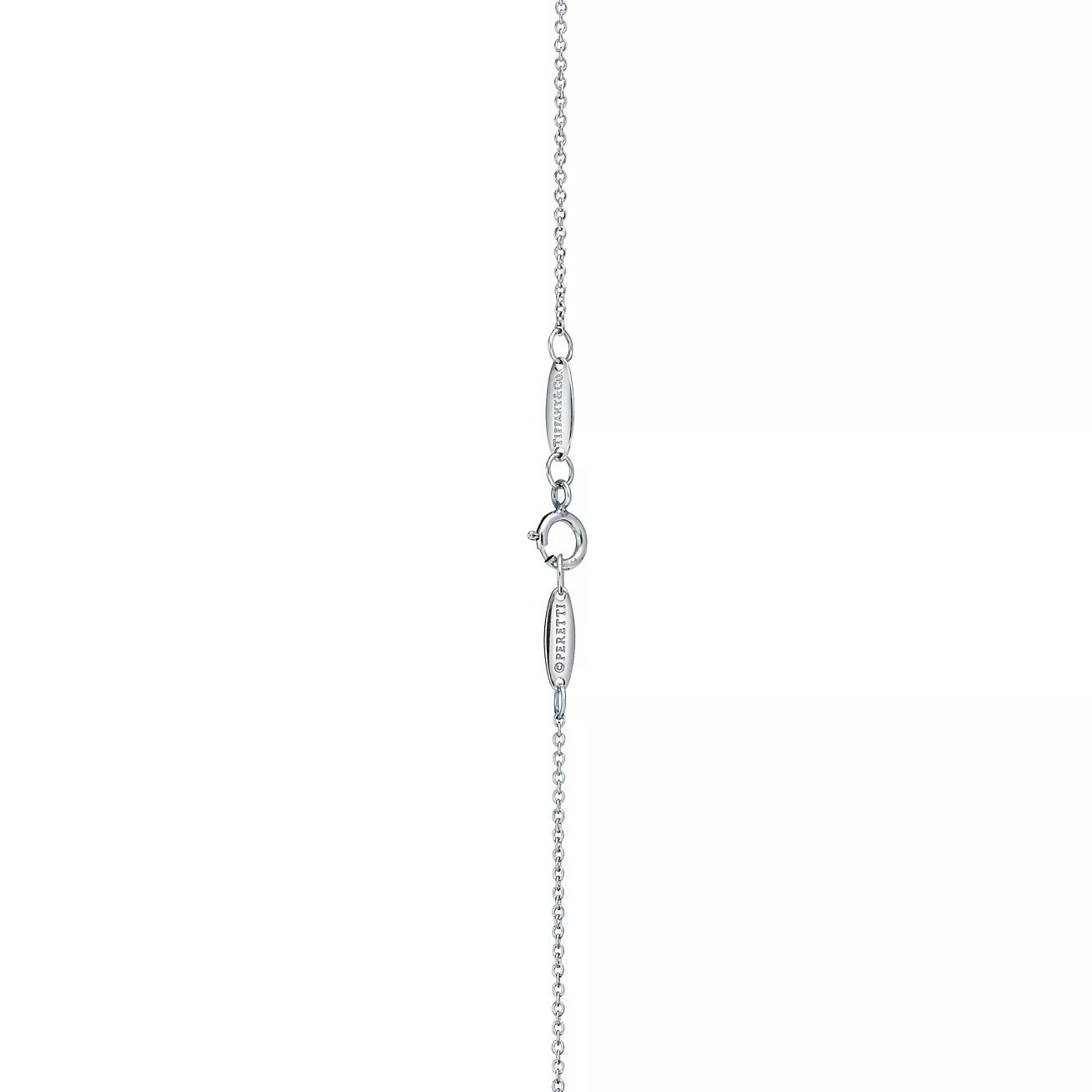 Цепочка с кулоном от Tiffany & Co. x Elsa Peretti. Простая, выразительная форма моделей Elsa Peretti Open Heart воздает дань любви. Бриллианты подчеркивают изящные изгибы этой неподвластной времени подвески.