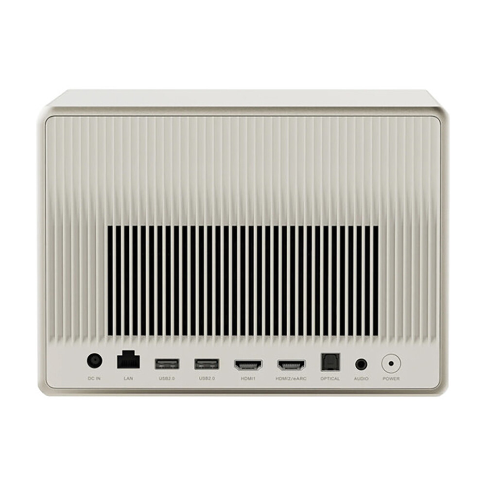 Максимальная диагональ проецируемого изображения достигает 200 дюймов, есть поддержка форматов HDR10 и HLG. Работает устройство под управлением Android TV 11-й версии со встроенным Chromecast. Для воспроизведения звука используется система из двух 12-ваттных динамиков Harman Kardon с Dolby Audio. Для подключения предусмотрено два HDMI, USB, LAN, Wi-Fi 6 и Bluetooth 5.2. Скорость воспроизводимого 4K-контента составляет 60 кадров/с при задержке в 18 мс.