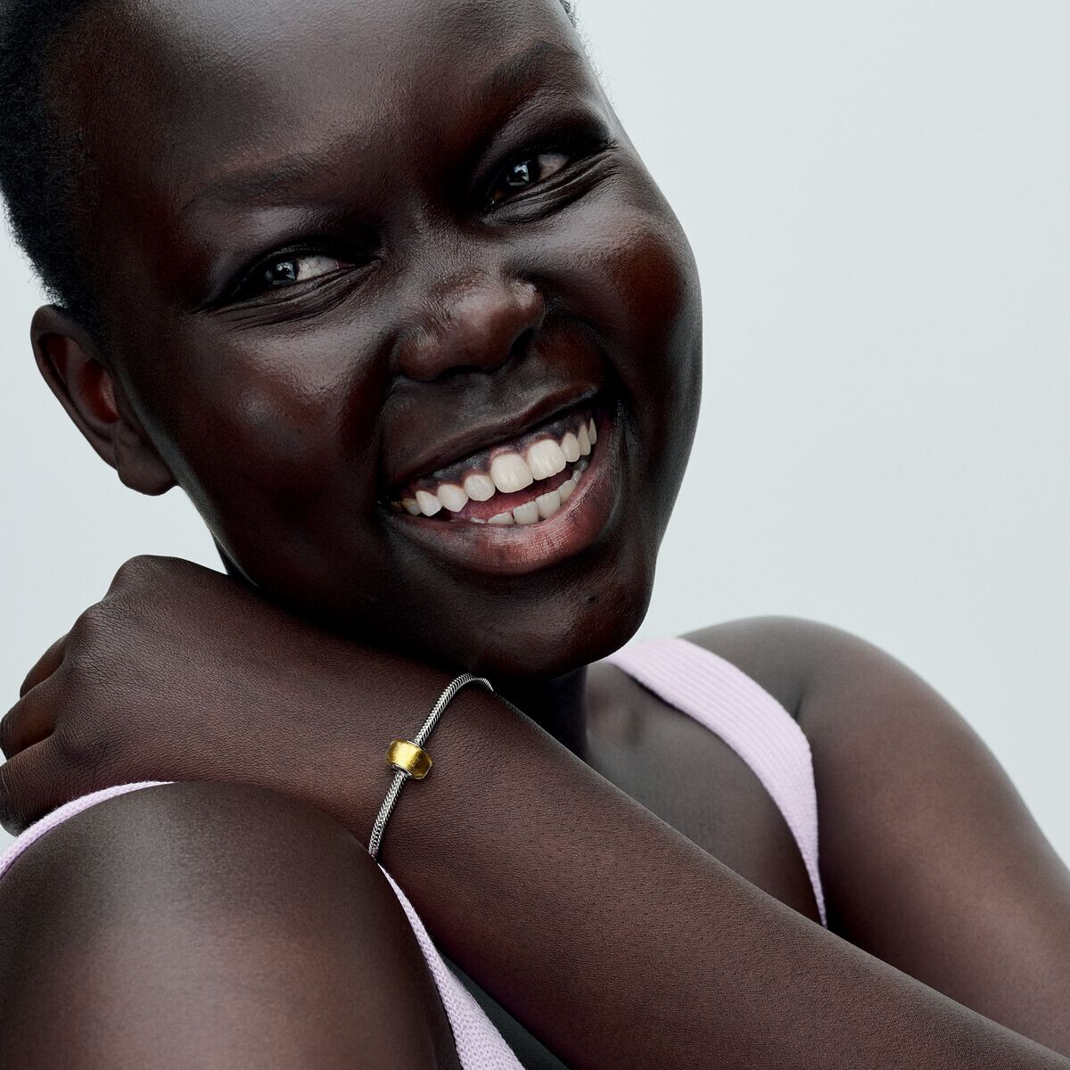 Классический дизайн получил золотой оттенок в этом мини-шарме из муранского стекла. Через прозрачное муранское стекло на стерлинговом серебряном сердечнике этого шарма видна блестящая фольга из 24-каратного золота, создающая двухцветный эффект. На одной стороне сердцевины выгравирован логотип Pandora. Созданный в несколько уменьшенном размере и с квадратным профилем, этот шарм отличается нежностью и универсальностью, легко дополняя любой другой тон металла, с которым вы его носите.