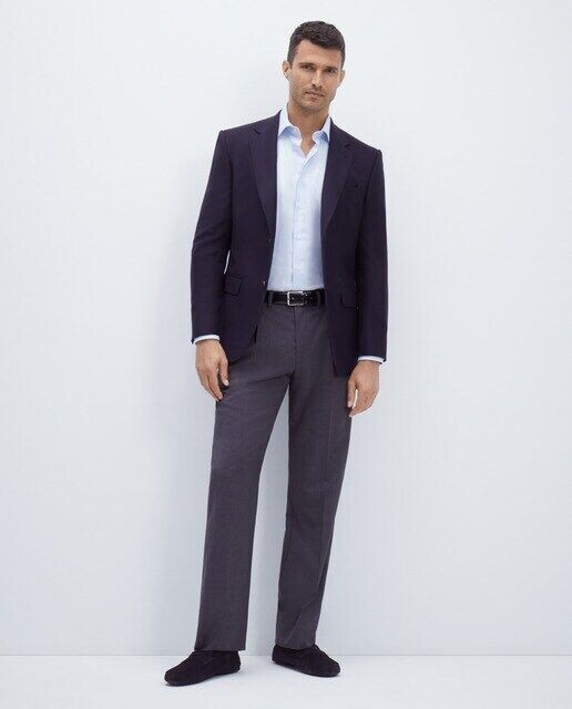 Структурированный пиджак, две пуговицы, две шлицы, прямые карманы-кошельки, на подкладке.