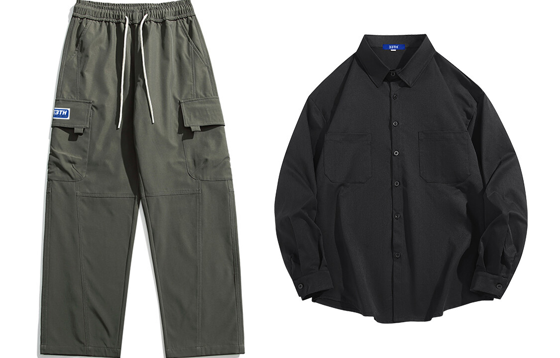 Брюки-карго унисекс 33TH, Черные брюки + черная рубашка
