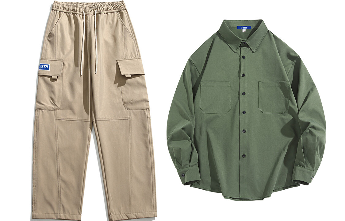 Брюки-карго унисекс 33TH, Брюки цвета хаки + черная рубашка