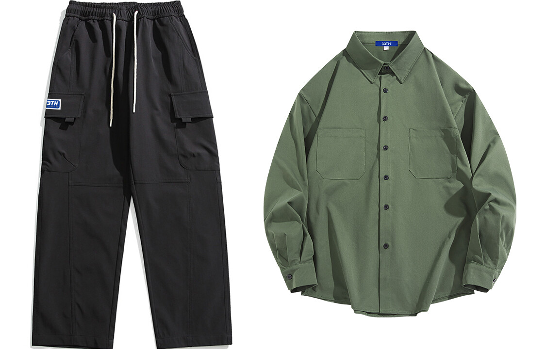 Брюки-карго унисекс 33TH, Черные брюки + рубашка цвета хаки.