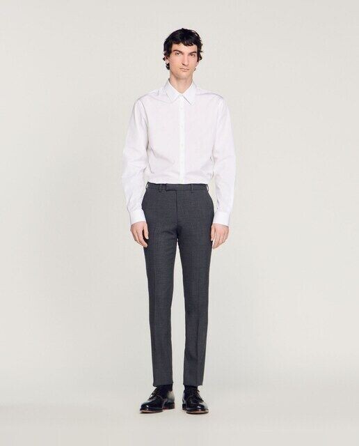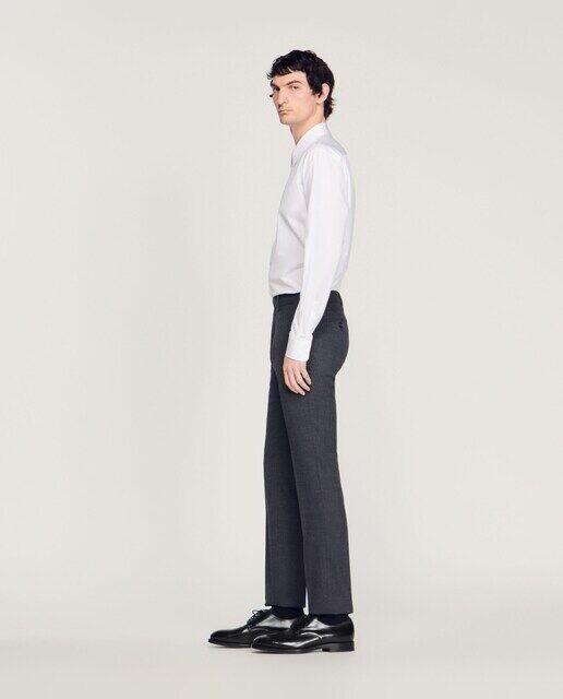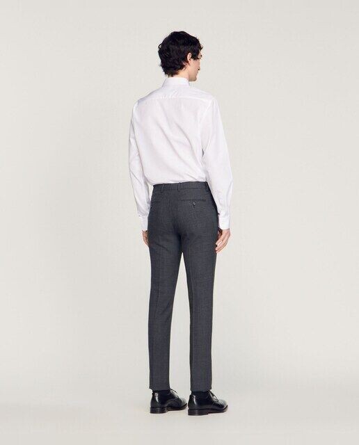 Мужские брюки Sandro. Костюмные брюки из эластичной шерсти. Талия с петлями для ремня. Карманы по бокам. Прорезные карманы сзади. Брюки в тон пиджака. Рост модели 185 см, размер 38. В некоторых случаях могут потребоваться доработки, чтобы костюм идеально сидел по силуэту. В этом случае имейте в виду, что вы можете получить его и даже зарезервировать в бутике, чтобы наши специалисты по продажам могли помочь вам и проконсультировать вас по возможным вопросам. Sandro стремится к более ответственному подходу. В рамках нашего проекта по отслеживанию в сотрудничестве с Fairly Made мы предоставляем полную прозрачность информации о происхождении и производстве нашей одежды. Все этапы постройки и производства этих брюк осуществлялись в Китае. Использовалась шерсть с австралийских ферм.