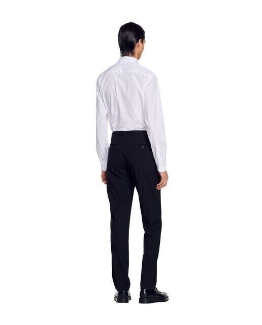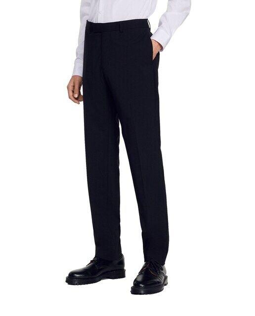 Классические шерстяные костюмные брюки с карманами. . Мужские брюки Sandro. Классический крой. Карманы по бокам. Застежка на крючок и глаз. Прорезные карманы сзади. Рост модели 186 см, размер 38. В некоторых случаях могут потребоваться некоторые изменения, чтобы костюм идеально сидел на фигуре. В этом случае имейте в виду, что вы можете получить его и даже зарезервировать в бутике, чтобы наши специалисты по продажам могли помочь вам и посоветовать возможные варианты комплектации. Эти брюки подходят к куртке.