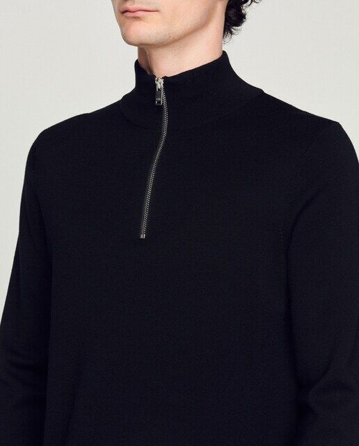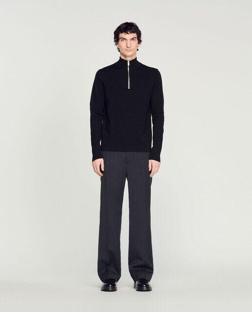 Мужской свитер Sandro. Вязаный свитер с высоким воротником. 100% шерсть и бычья молния на шее. Ребристая отделка. Наши дизайнеры выбрали для этой модели шерсть, которая гарантирует как уважение к благополучию животных, так и лучшее управление пастбищами. Рост модели 185 см, размер S. Шерсть этой модели поступает с обширных животноводческих ферм, которые уважают благополучие животных и способствуют сохранению местного биоразнообразия.