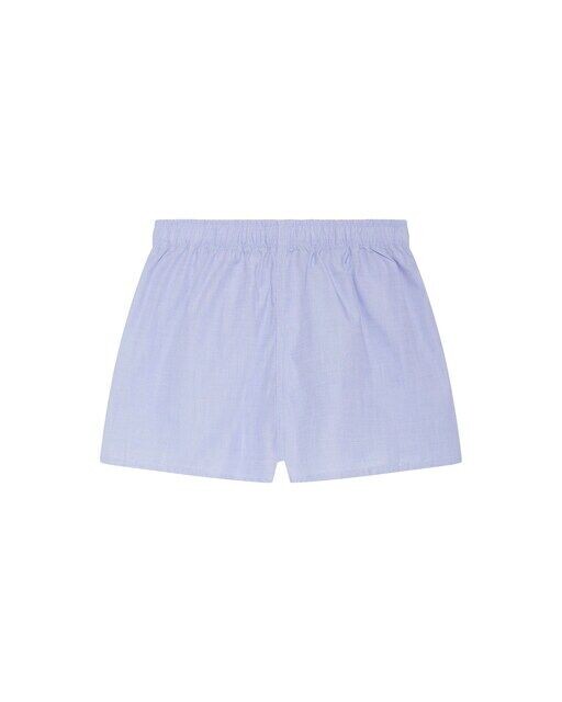 Однотонные синие хлопковые шорты-боксеры с вышивкой логотипа бренда спереди.