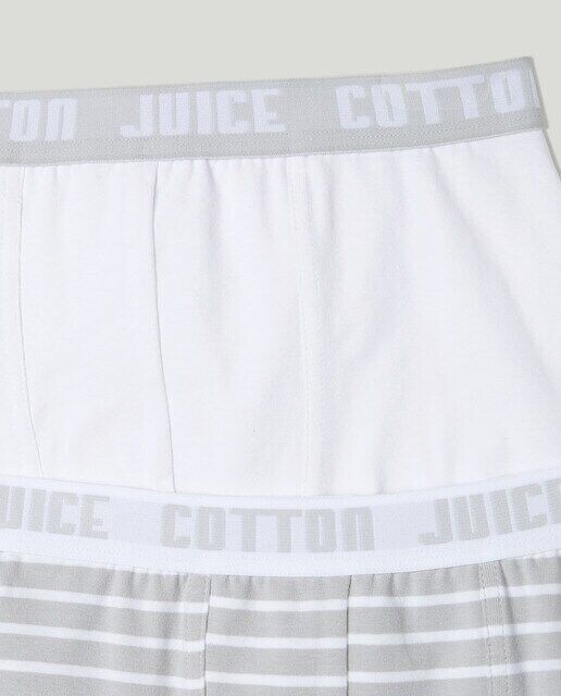 В наборе два боксера: один с полосатым принтом, другой однотонный.