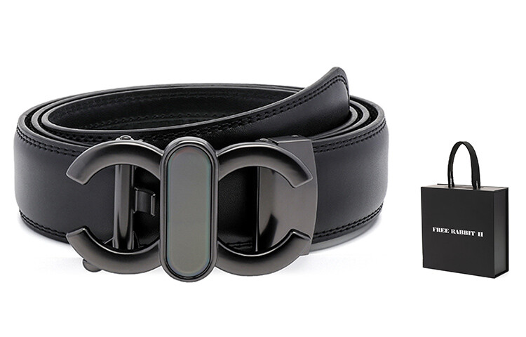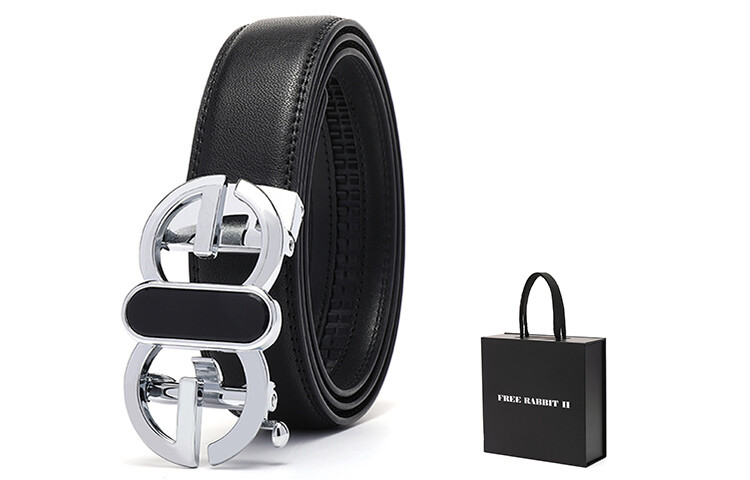 Мужской кожаный ремень Free Rabbitⅱ, Черное серебро