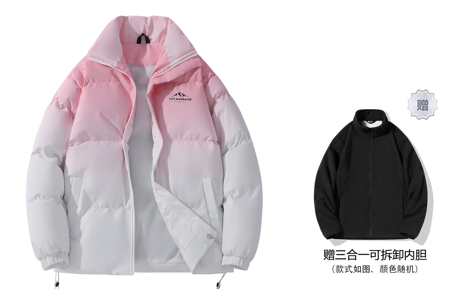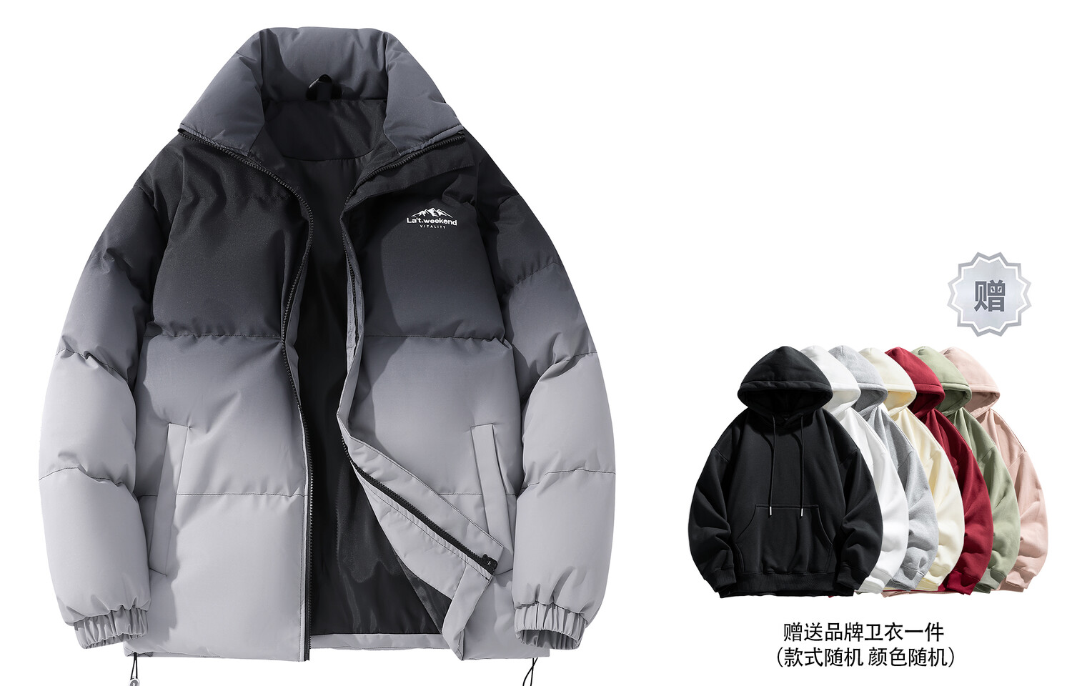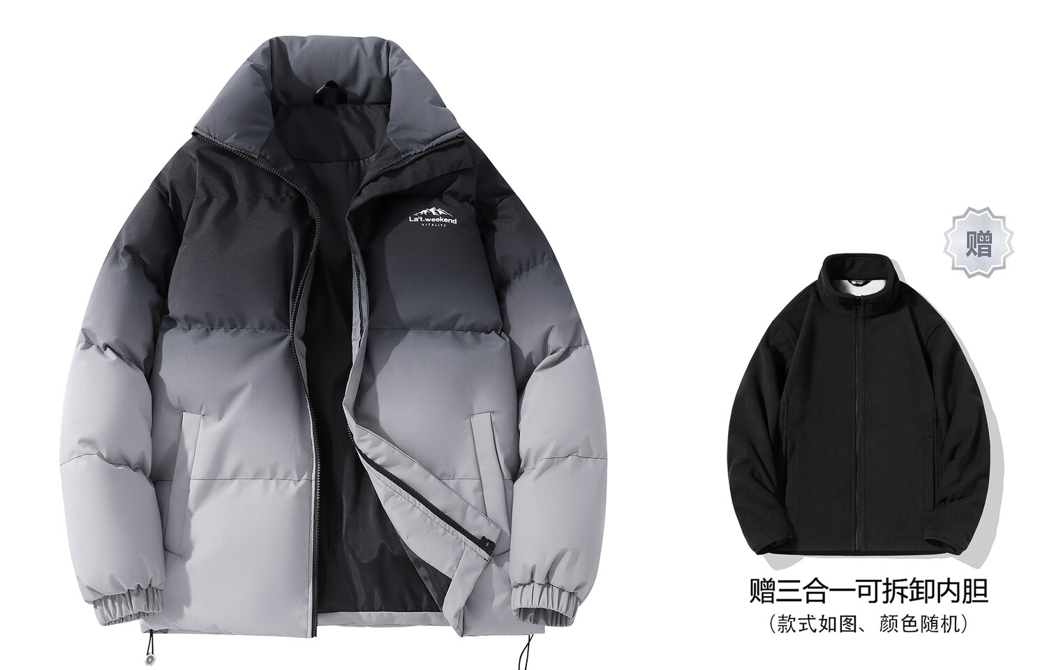 Стеганая куртка унисекс La'T.Weekend, Черный (в комплекте с толстовкой)