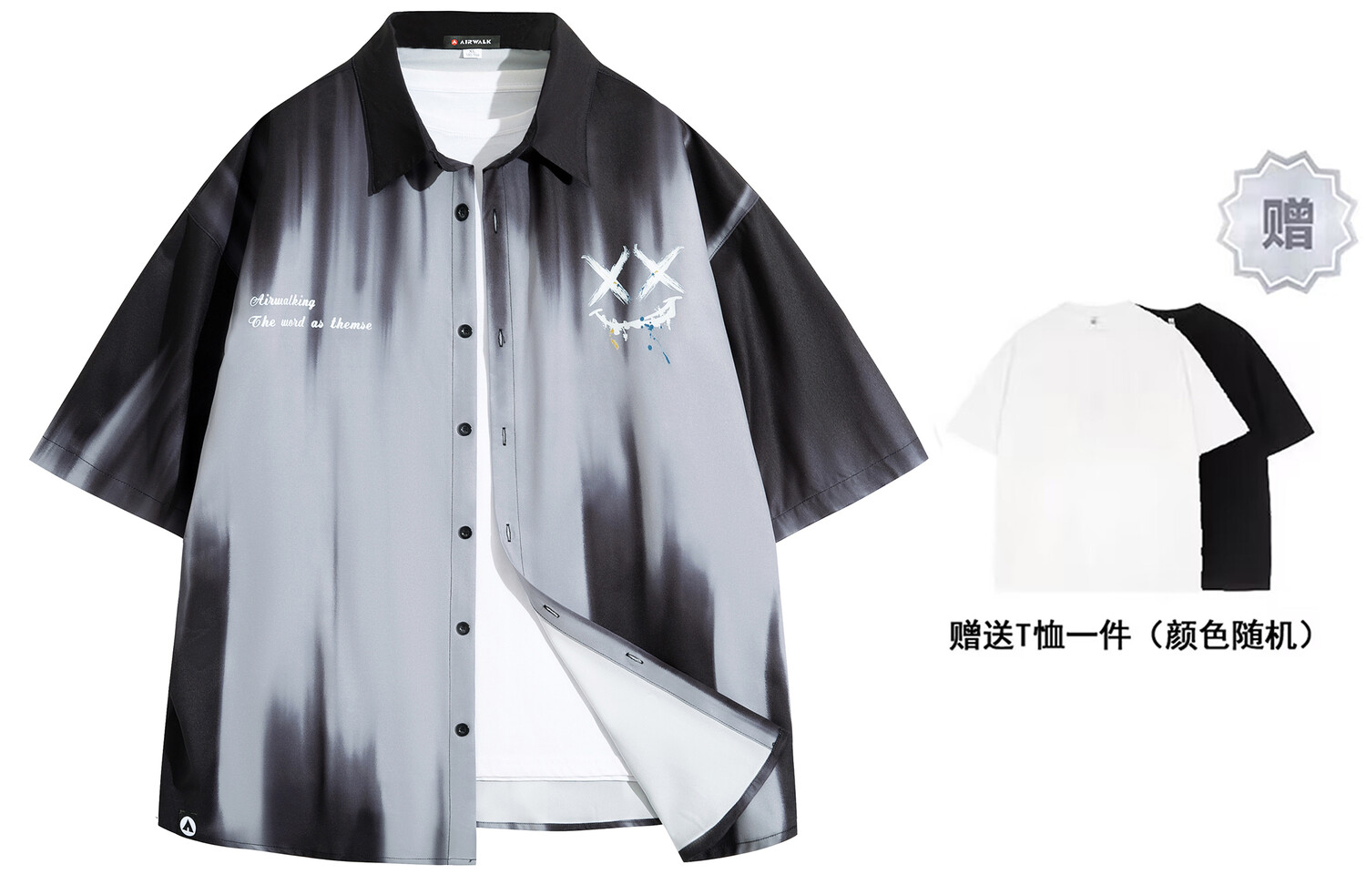 Рубашка унисекс Airwalk, Серый (в комплекте с ожерельем)
