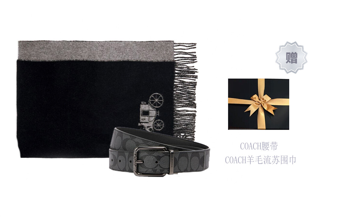 Мужской кожаный ремень COACH, Черный/Серый 17 624₽