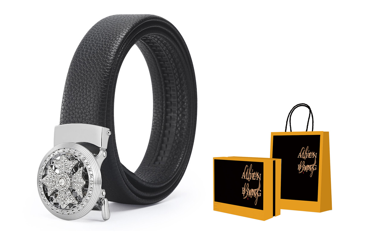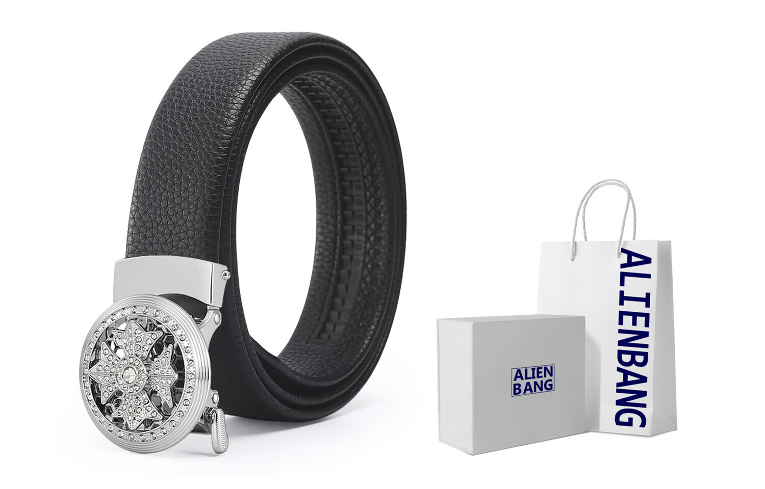 Мужской кожаный ремень ALIEN BANG, Серебро