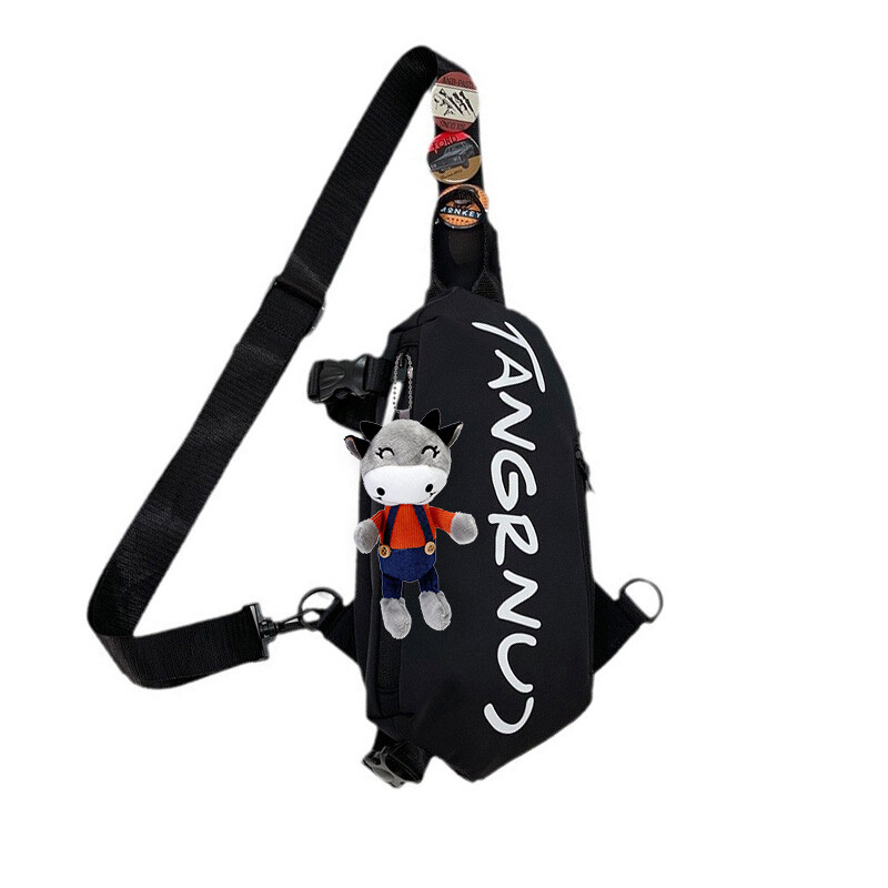 Мужская сумка через плечо Barang Balang, Черный + значок + кулон