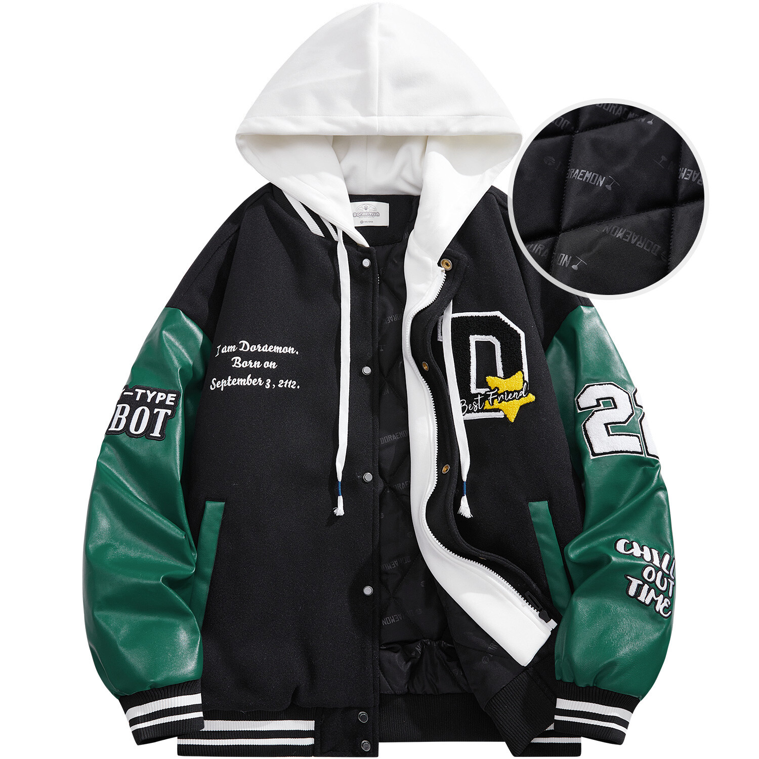 Бейсбольная куртка унисекс Doraemon, Черный/Зеленый