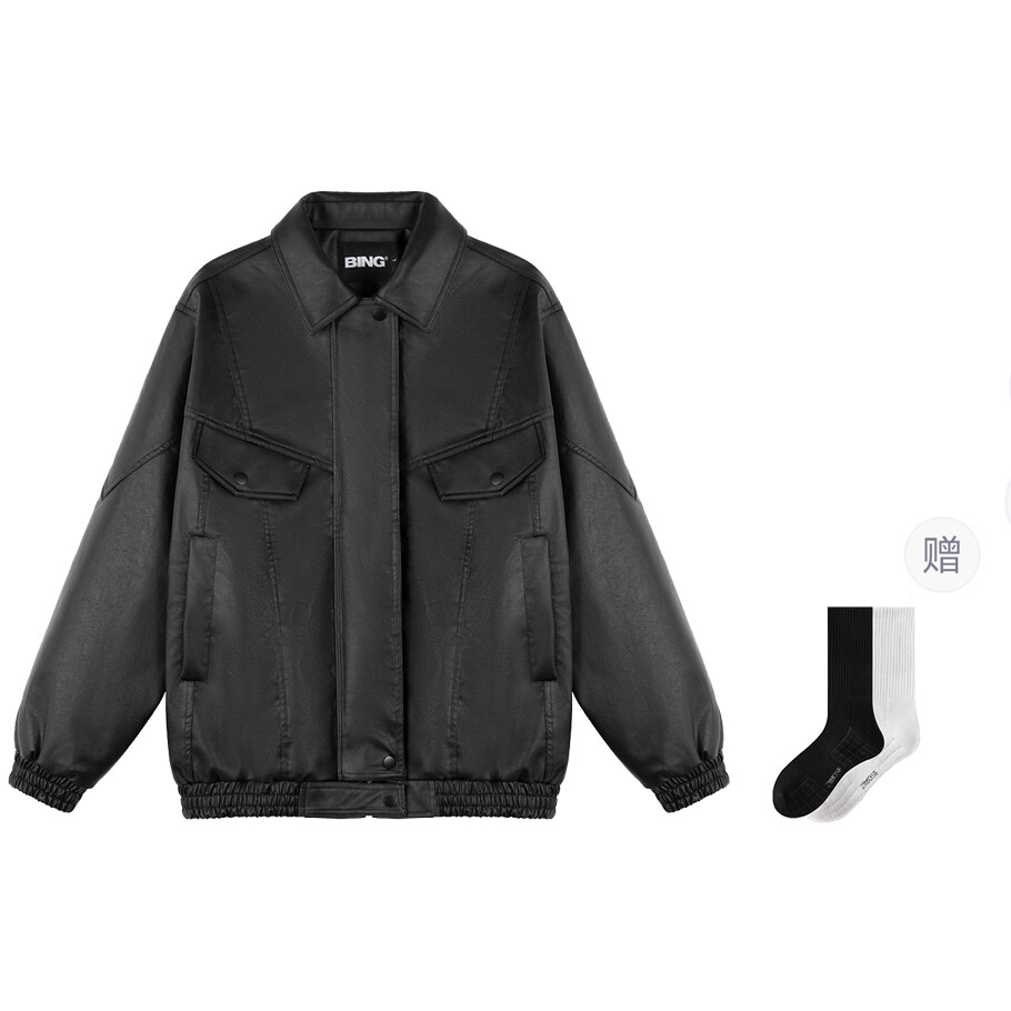 Кожаная куртка унисекс BING, Черный (в комплекте носки) 5 111₽