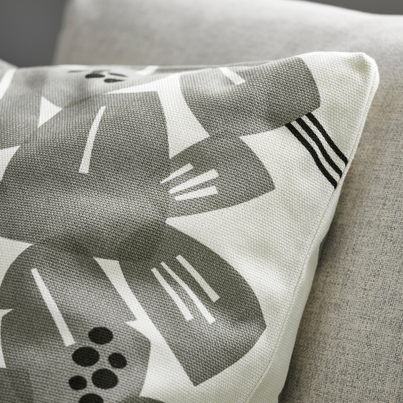 Этот чехол для подушки украшен игривым узором из развевающихся на ветру листьев. Ткань представляет собой плотную смесь хлопка и джута, углы наволочки сшиты в трех измерениях.
