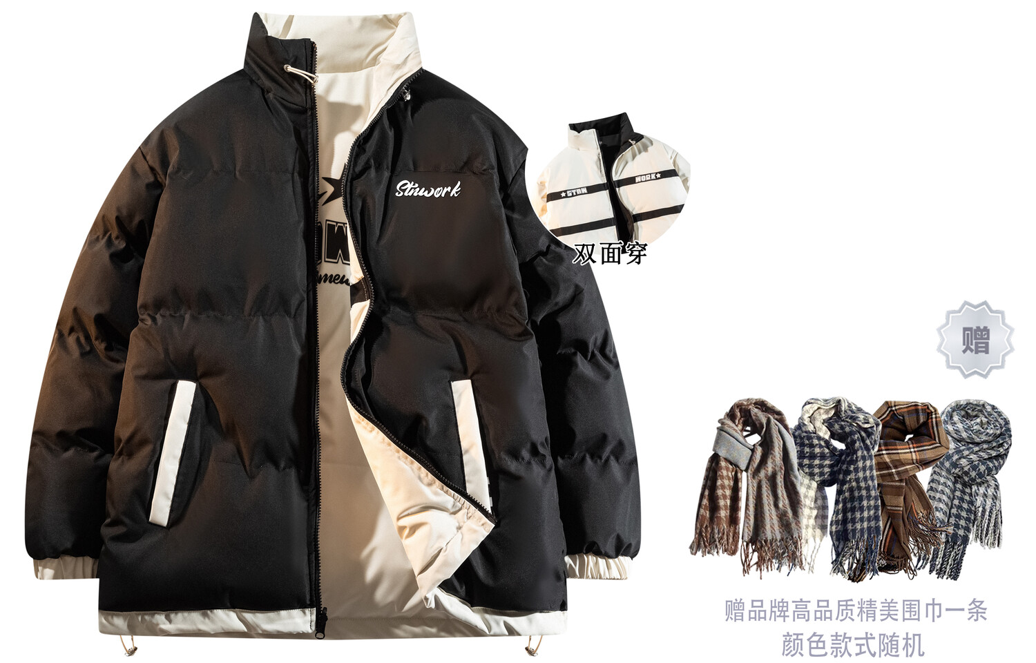 Стеганая куртка унисекс STNW, Черный (входит в толстовку)