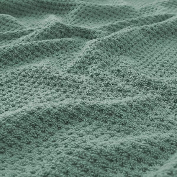 Мягкое и пушистое полотенце GULVIAL бирюзового цвета средней толщины (500 г/м2) изготовлено из 100% хлопка, что делает его прочным, впитывающим влагу и идеальным для повседневного использования.