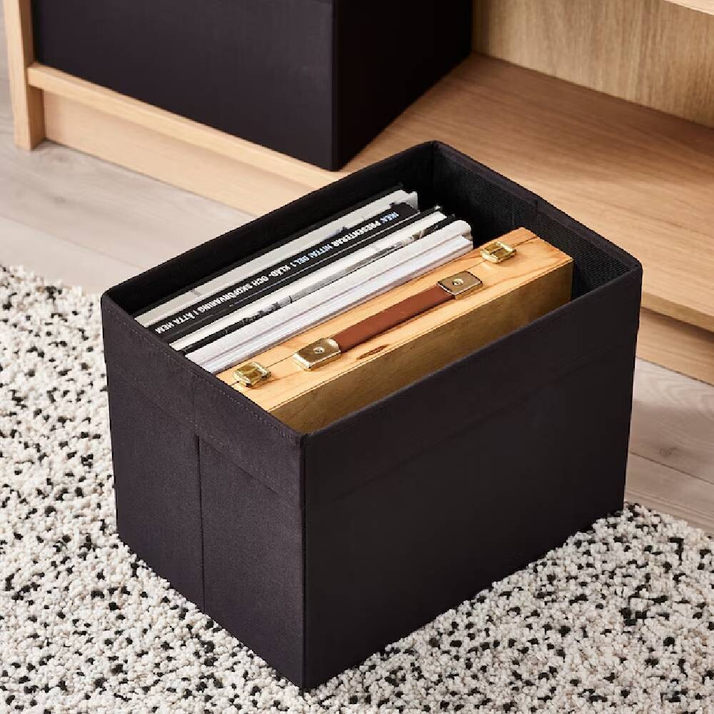 Эта коробка из бархатистой ткани создает мягкий вид, независимо от того, стоит ли она в гардеробе или в гостиной. Размер подходит для книжной полки БИЛЛИ, сочетая стиль и практичность.