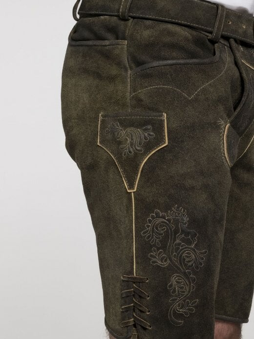 Эти плотные кожаные брюки от Spieth&Wensky помогут вам провести свободное время стильно и великолепно. Вышивка придает брюкам модный акцент. Благодаря облегающему крою и коротким брючинам с кожаной шнуровкой оно идеально подчеркнет ваш силуэт. Он эффектно представлен в пятнистой коже. Эти кожаные брюки в стиле casual с рубашкой и кроссовками станут вашей новой любимой вещью.