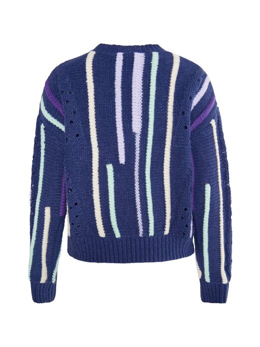 Свитер от IZIA выполнен из мягкой пряжи крупного трикотажа. Благодаря ярким полоскам и ажурным узорам оно излучает модный стиль 80-х годов, который просто поднимает вам хорошее настроение. Последние ребристые манжеты дополняют дизайн.