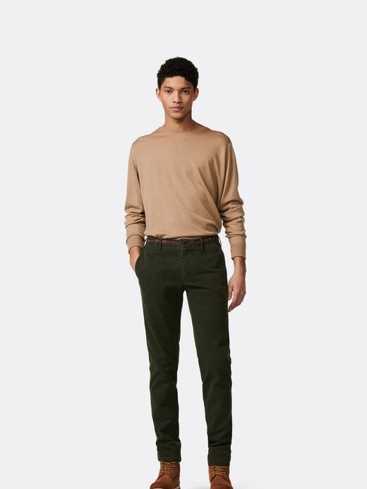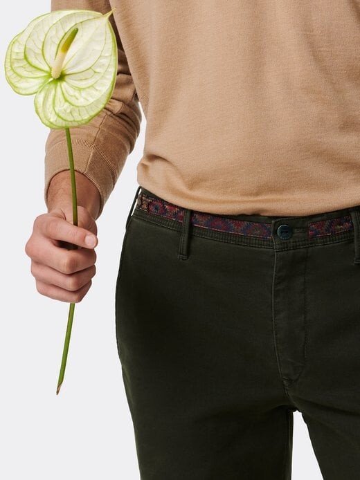 Наша модель Apus с красочной лентой в репсовую ленту на поясе представлена в этом сезоне в самых чудесных осенних цветах. Мягкое качество ткани обеспечивает комфорт, а микроструктура добавляет модный акцент. Облегающий крой и круглый пояс гарантируют идеальную посадку. Специальные пуговицы, высококачественная внутренняя подкладка и карман для мобильного телефона — характерные черты настоящих брюк MMX.