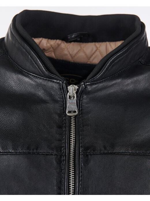 Кожаный блузон из мягкой овчины имеет два нагрудных кармана на кнопках, два боковых кармана на кнопках и два внутренних кармана. Воздухозаборники в сочетании с аккуратно обработанными декоративными швами и полиэстеровой сеткой внутри образуют изящный мужской блузон. Застегивается на молнию и имеет прямой крой.