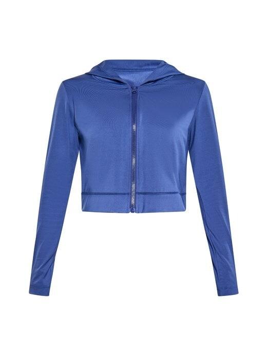 Универсальная укороченная толстовка с длинными рукавами, капюшоном и кулиской для индивидуальной посадки. Молния во всю длину обеспечивает дополнительную функциональность, а ребристая нижняя кромка придает изделию полированный вид. Эластичные манжеты обеспечивают надежную фиксацию на запястьях. Идеально подходит для занятий спортом.