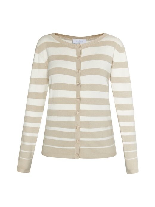 Спортивный и свежий образ от usha BLUE LABEL продолжится и в следующем сезоне с мягким кардиганом в морскую полоску. Кардиган из мягкой смесовой пряжи имеет узкий силуэт с утончающимися полосками на поясе. Планка с непрерывными пуговицами и манжеты тонкой вязки в рубчик расставляют завершающие акценты.