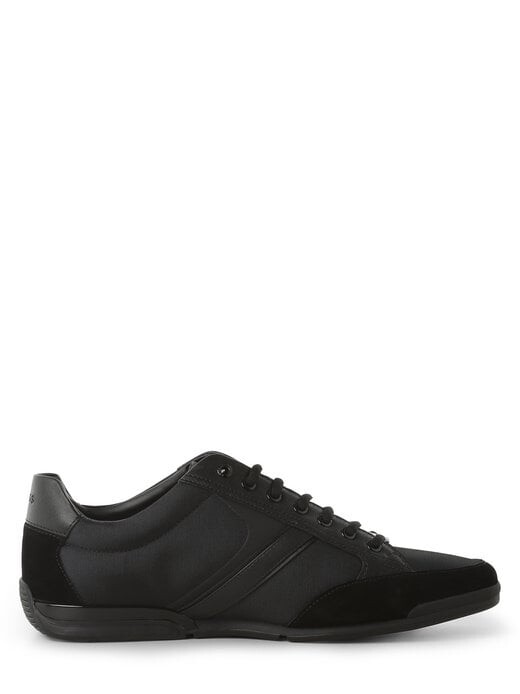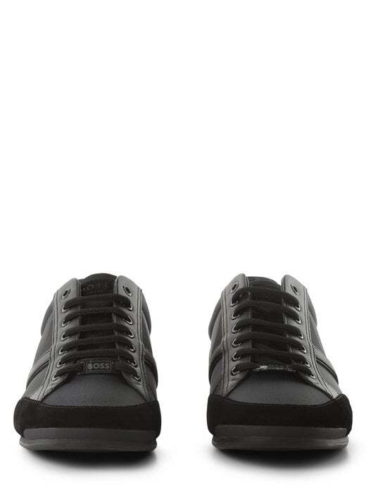 Сочетание материалов в монохромном дизайне создает захватывающий образ кроссовок Saturn_Lowp_mx A_N от BOSS.