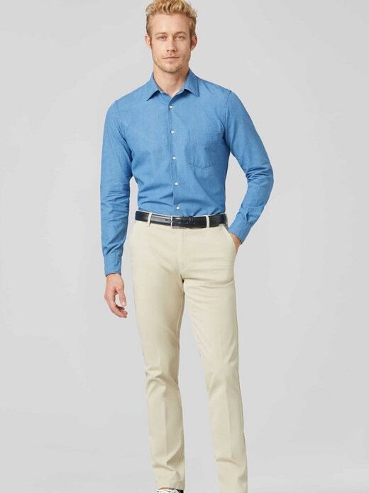 Модель Oslo от MEYER — идеальный компаньон для тех, кто много путешествует. Брюки для вождения и путешествий имеют специальный эластичный пояс, который прогибается до 8 см и не сдавливает даже при длительном сидении. Современная плоская передняя часть имеет прорезные карманы, два задних кармана и типичный для MEYER потайной безопасный карман, который особенно удобен во время путешествий. Свободные брюки чинос выполнены из хлопка, который пользуется спросом и сертифицирован знаком Fairtrade.