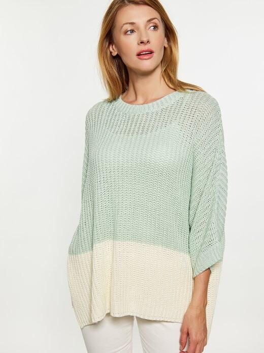 Представьте, что мы представляем нашу новинку в вашем гардеробе — идеальный вязаный свитер на любой случай. Модель свободного кроя с дышащей тканой текстурой дополнена закругленным вырезом и рукавами длиной три четверти. Двухцветная цветовая гамма придает свитеру повседневную элегантность и делает его незаменимым аксессуаром для каждого, кто следит за модой.