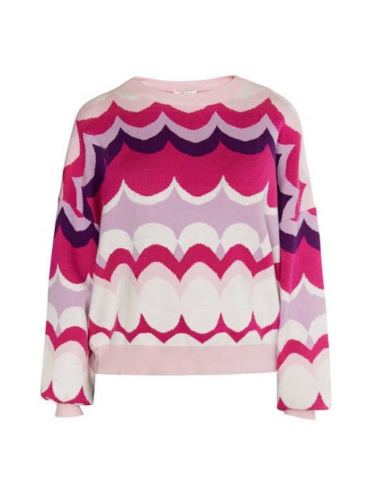 Яркие цвета и крутые ретро-узоры задают тон этой модели от IZIA. Мягкая смесь пряжи с вискозой обеспечивает высокий уровень комфорта. Заключительные ребристые манжеты придают дизайну устойчивость и в то же время создают красивый объем рукавам.