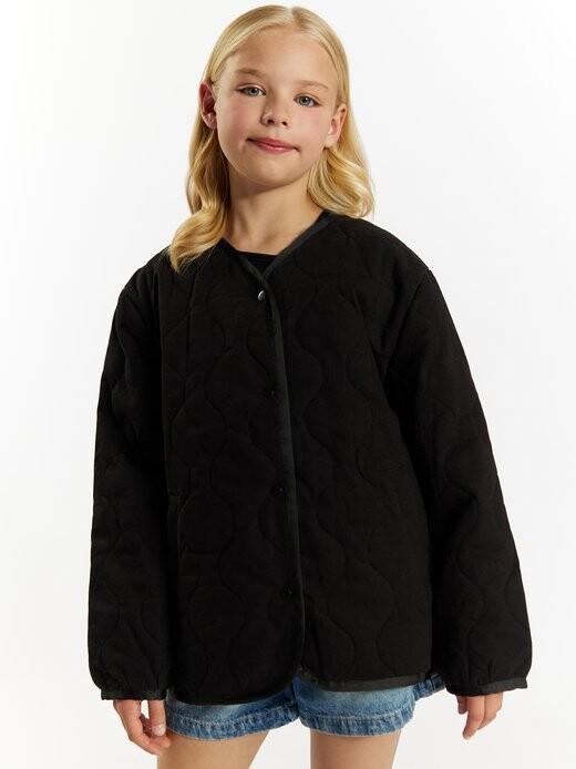 Стеганая хлопковая куртка с волнистой структурой от DreiMaster станет прекрасным дополнением летнего гардероба девочки. Универсальная куртка имеет контрастную подкладку оливкового цвета и контрастные кнопки. Для более простого варианта прекрасной альтернативой станет черный цвет со вставками в тон.