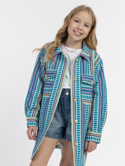Эти куртки-рубашки оверсайз от IZIA имеют яркий и непринужденный крой. Яркая плетеная пряжа демонстрирует свежий этнический узор, который в сочетании с джинсовой тканью создает великолепный ансамбль. Также присутствует немного блеска: металлизированная пряжа золотого цвета, вплетенная в полосы, создает волшебное мерцание. Но это еще не все: на всех золотых пуговицах сияют сверкающие стразы.