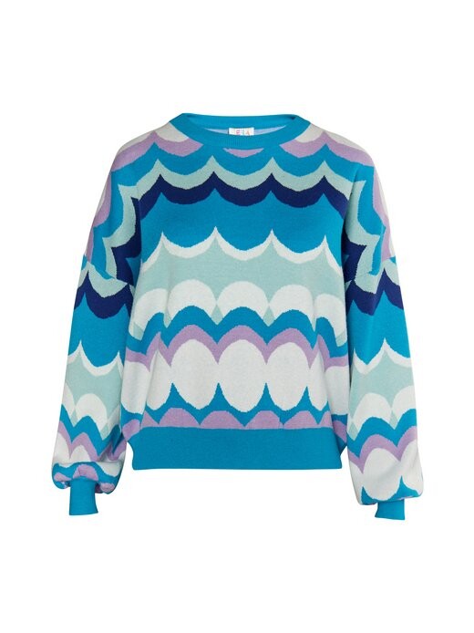 Яркие цвета и крутые ретро-узоры задают тон этой модели от IZIA. Мягкая смесь пряжи с вискозой обеспечивает высокий уровень комфорта. Заключительные ребристые манжеты придают дизайну устойчивость и в то же время создают красивый объем рукавам.