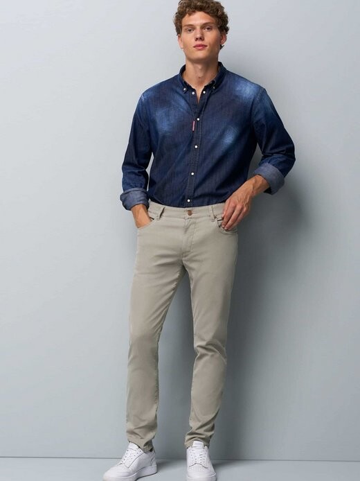 Джинсы м5 слим Meyer, бежевый