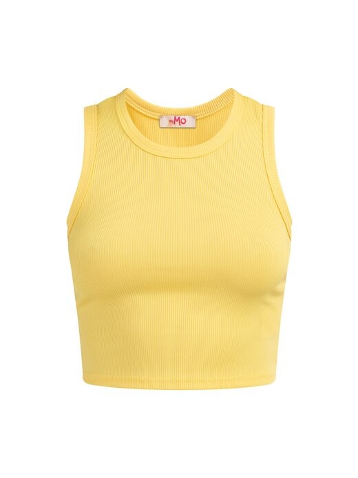 Этот кроп-топ от myMo, сделанный в Италии, с модным ребристым узором идеально подходит для лета. Облегающая майка с круглым вырезом имеет эластичный крой, подчеркивающий женский силуэт. Однотонное изделие дополняет укороченный крой.