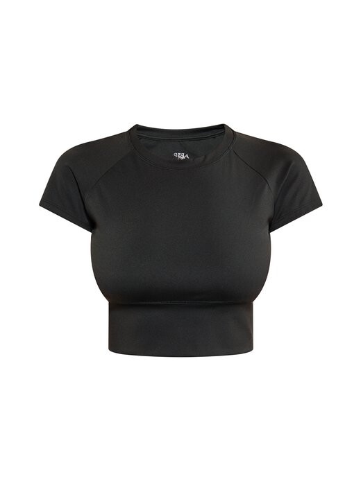 Укороченный топ приталенного силуэта с короткими рукавами и круглым вырезом. Этот топ, изготовленный из гладкой и эластичной ткани, обеспечивает удобную посадку без ущерба для комфорта.