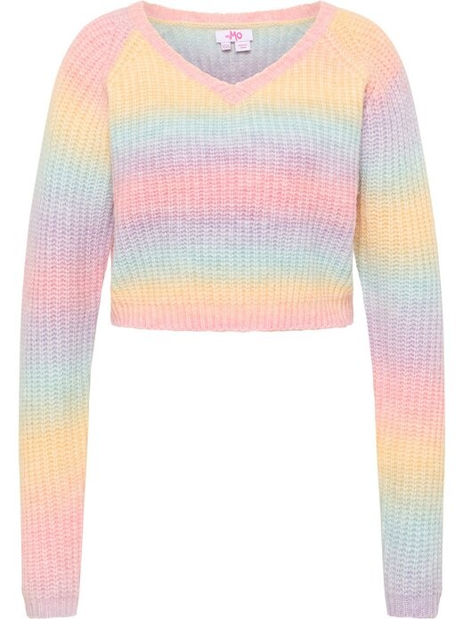 Нежные пастельные тона создают повседневный радужный вид этого свитера myMo. Мягкий объемный трикотаж с рукавами реглан, укороченная форма и V-образный вырез придают модели спортивный вид, а ребристые манжеты завершают образ.