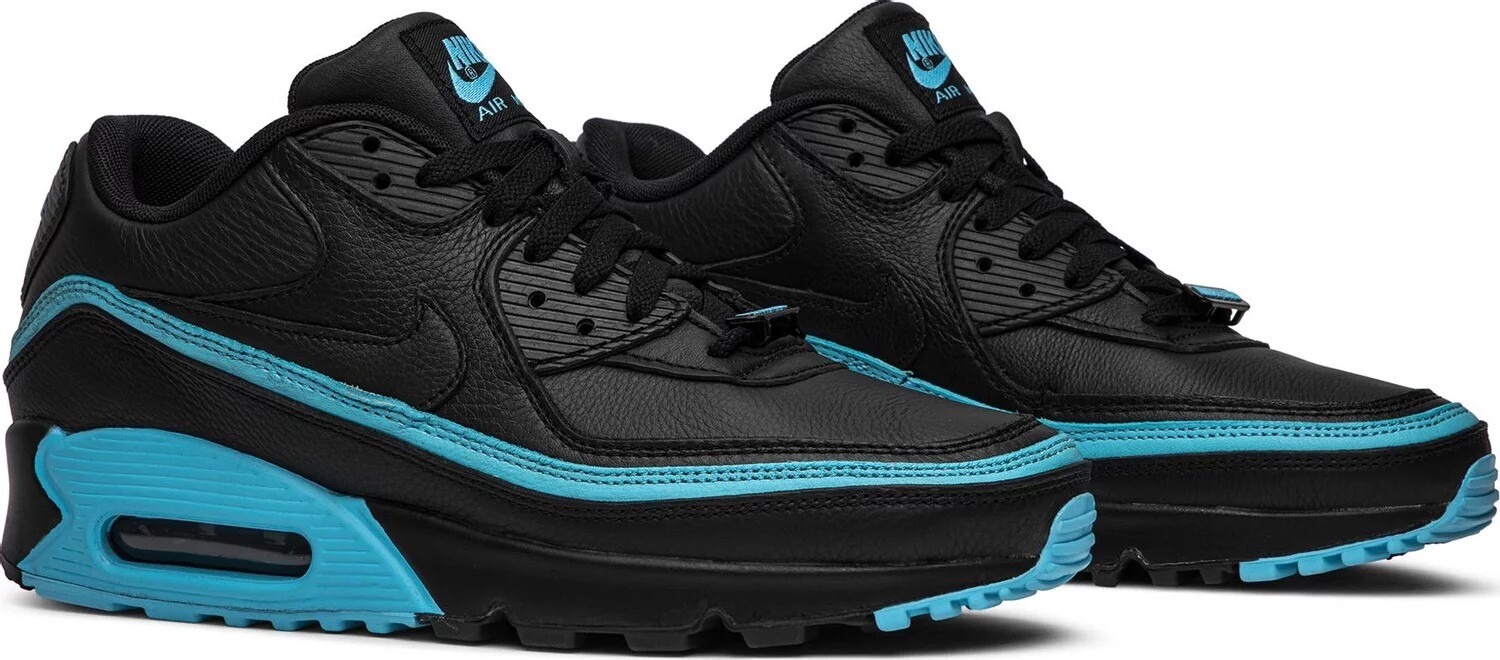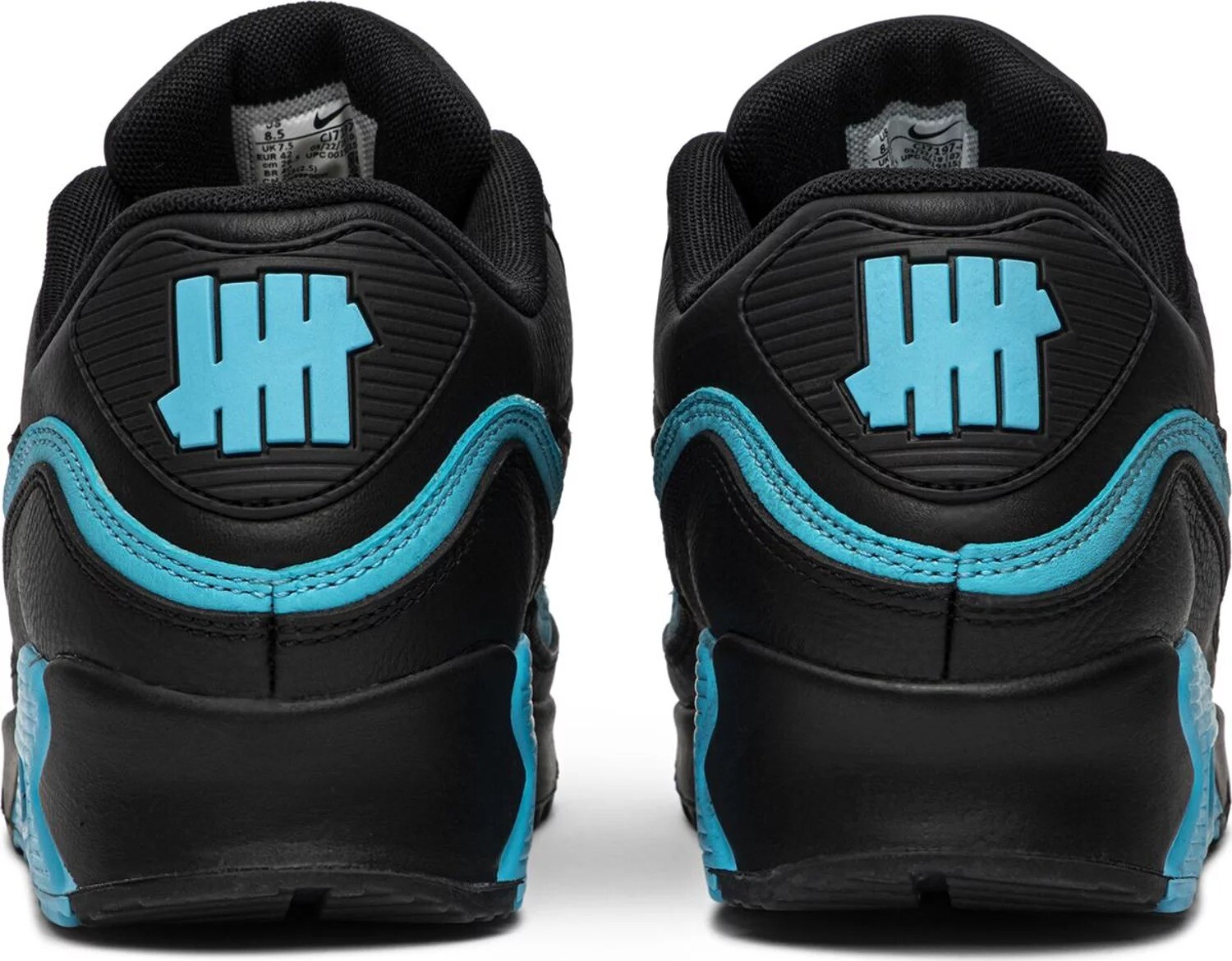 Undefeated, магазин кроссовок и одежды из Лос-Анджелеса, сосредоточился на изменении модели Air Max 90 от Nike для своего выпуска четырех моделей в декабре 2019 года. Верх из зернистой кожи подчеркивает дизайн и предлагает уникальный подход к классике. Черно-голубой цвет обуви позволяет легко идентифицировать коллаборацию. Холодный оттенок прослеживается по периметру модели, обеспечивая границу между верхом и подошвой, а затем снова появляется на блоке Max Air и подошве.