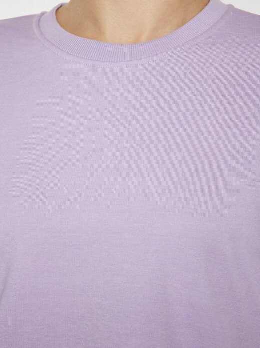 Толстовка свободного кроя с круглым вырезом. Прямой низ придает изделию укороченный вид, а ребристый вырез придает стиль и комфорт.