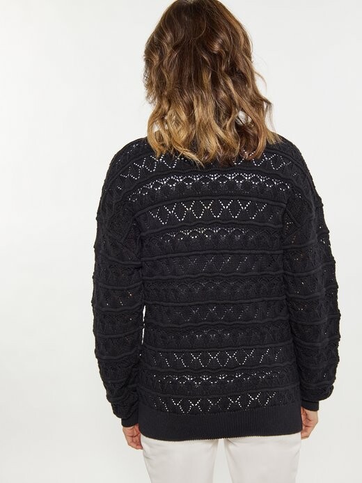 Благодаря очаровательному вязаному узору этот свитер излучает глубину и сложность, что делает его идеальным выбором для тех, кто ищет эстетически приятный, но практичный дизайн. Ребристый низ и манжеты обеспечивают удобную посадку, а V-образный вырез придает образу изысканность.